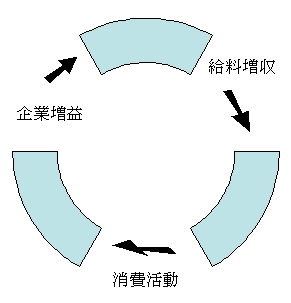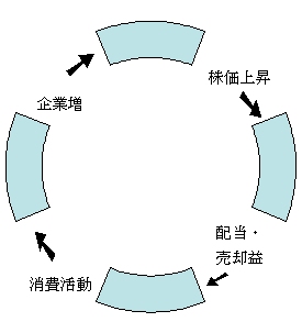 上記図1を見てみよう。減税により給料が増える。増えた給料で消費活動が起こる。活発な消費により企業利益が増益になる。企業の雇用が増えたり、ボーナスが増えたりする。そこで図2を見てみよう。企業利益が増えると株価が上昇する。株価が上昇すると配当や売却益が出る。配当や売却益で消費活動が活発になる。消費活動により企業利益が増益になる。と、好回転を生み出す。