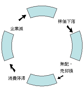 不動産の担保率は通常70%なのである。ところが、バブル末期頃には120%にして貸していた。つまり、1億円の不動産には7000万円の融資が行われるわけである。庶民は1億円の不動産を買うとき1億円+10%*36(金利約1億円)を払う。ところが10年後、動産の価値は5000万円に落ちていた。 さらに、バブル末期には1億円の不動産に1億2千万円を貸したのである。これは1億円の不動産に、1億7000万円の不動産価値をつけたのと一緒である。不動産の上昇が年間10%以上、上昇している時はよいが、不動産の上昇がストップした時には、多くの不動産が、最初から担保割れをしている常態になる。だから、不動産を売却しても融資額にもとどかない。ましてや、利息分など取れるはずも無い。これが不良債権の実態だ。金融機関が株券を持っていても同じ事。株式が値下がりして、やはり、不良債権化してしまうのだ。 小泉竹中政策の優れていたところは、雇用の確保をした事と、株式市場に、お金を確保したことだろう。上場企業を倒産させれば、雇用が失われる。株式市場の株券は紙切れになる。すべて失われるのである。そこで会社同士を合併させる事で、雇用と資金を守ったのだ。では、どのようにして、下がり続けていた経済を、立て直したのか? 橋本内閣の時代、国庫財政を立て直すため消費税の増税を行った。このため税収が減ってしまった。逆に小泉内閣の時代、大幅減税を行った。企業には1兆4千億円、個人にも定率減税などが行われた。また、株式市場にも減税が行われていた。 これが、どのように私たちに利益、または、損益をもたらしたのか、もう一度考えてみたいと思う。